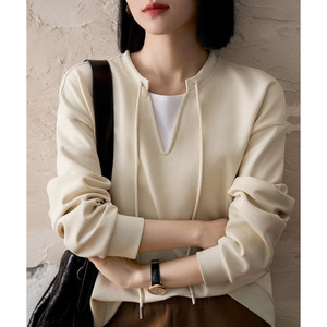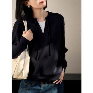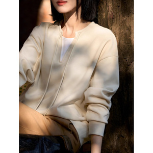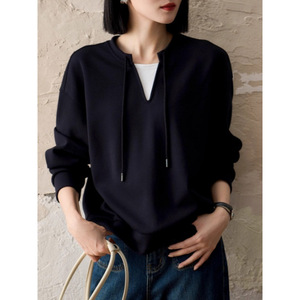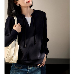 时髦athflow风假两件卫衣 简约学院风减龄舒适佰搭休闲运动上衣女