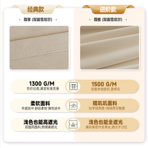 紹興柯橋全遮光両面シェニールカーテン寝室リビングクリーム風穴なし遮光カーテン完成品