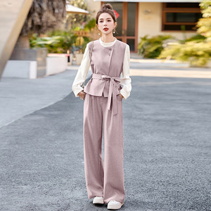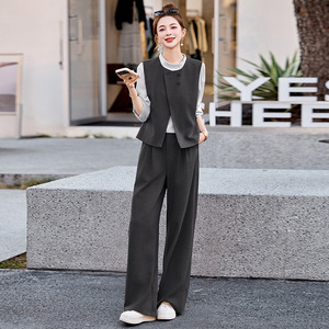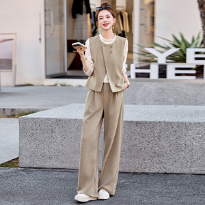 小香风西装套装女春季2025新款高级感独特马甲衬衫阔腿裤子三件套