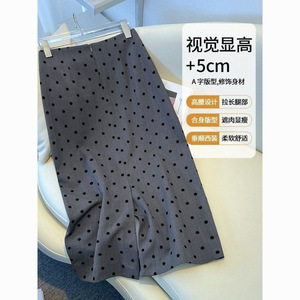 灰色波点半身裙女春秋季2025新款高腰气质包臀裙显瘦绝美字裙子