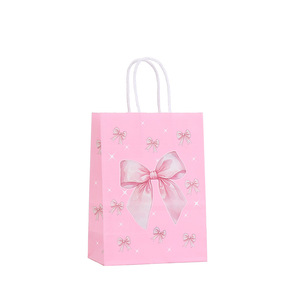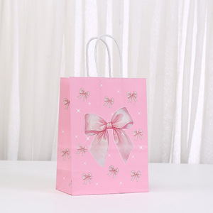 少女ピンクの誕生日プレゼント包装袋蝶結びプリント手提げ袋創意パーティープレゼント包装袋卸売り