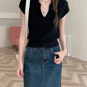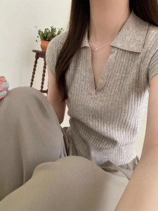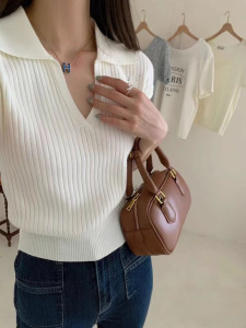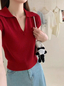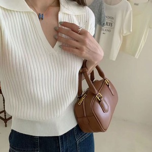 Vネックセーターレディース秋冬新作ポロラペルセーター優しいガーリースタイルインナー長袖ボトムシャツトップ