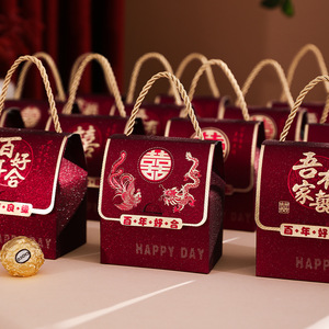 結婚喜糖箱高級感手提げ糖箱結婚式婚約喜糖包装お土産糖箱空箱
