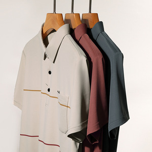 夏のお父さんの半袖のtシャツの薄い襟の中高年の紳士服の真のポケットの上着の男性の半袖のスウェットのtシャツ