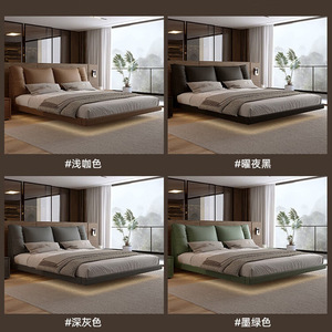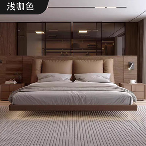奈丘意式極簡懸濁真皮ベッドの頭層牛皮1.8メートル主臥大ツインベッドの寂風懸濁ベッド