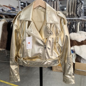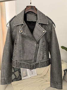 女性の欧米風春秋の皮の服の新型は襟をめくります。