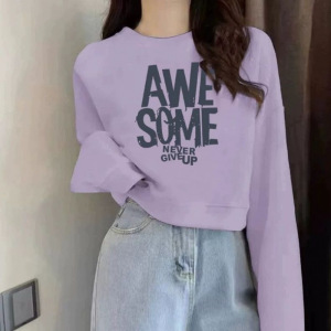 公羽翁宽松卫衣春秋短款女薄款外套新款高腰小个子圆领长袖上衣