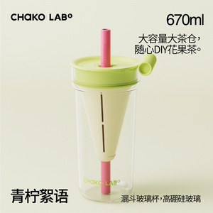 chakolab ガラスウォーターカップ女の子のための見栄えの良いストローカップ 2025 新しいティーファンネルカップ