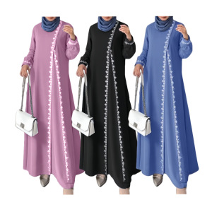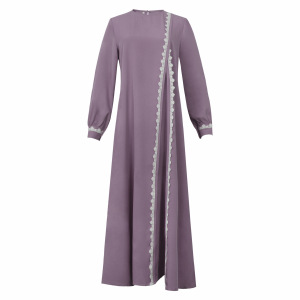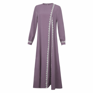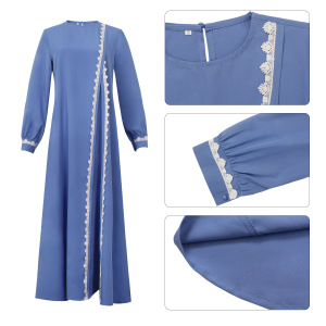 クロスボーダー東南アジア中世イスラム教徒の女性の無地長袖レースドレスファッショナブルなラウンドネックレディースローブ