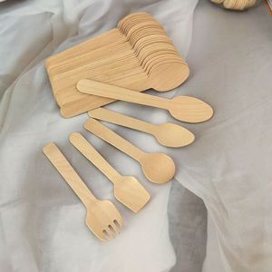 使い捨て分解性木製小さなスプーン独立したケーキデザートテイスティング木製スプーンナイフフォークスプーンアイスクリームスプーン
