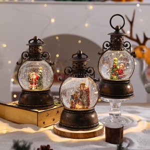 クリスマス発光オルゴール、雪の結晶のクリスタルボール、レトロなシーンの装飾、ポータブルランタン、サンタクロースの装飾品