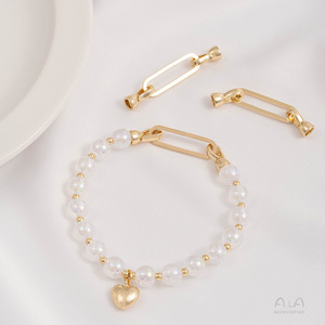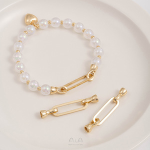 保色14K包金椭圆长条简约时尚珍珠扣手工diy项链毛衣链收尾扣配件