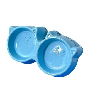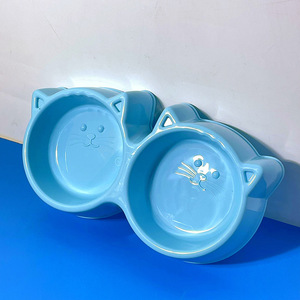 猫碗の食べ飲み用の丸い猫の顔の形の双碗の猫の食糧碗は洗浄しやすくて頚椎のペットの碗を保護します。