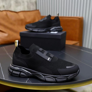 高級男性の飛織通気カジュアルシューズファッションの足は低い足を踏んでいます。