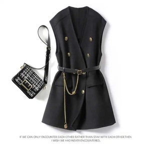 8988 ハイエンドウールベスト女性の 2024 秋と冬黒ウールジャケットノースリーブベストベストファッショントップ