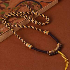 ハイエンドのチベット式のつり革の手編みのペンダントのつり革の手は綿の糸の男女の金の唐カードの仏の札をこすります。
