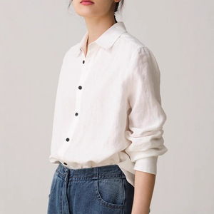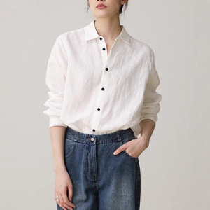リネン長袖白シャツレディース夏カジュアル多用途文学薄手シャツトップ