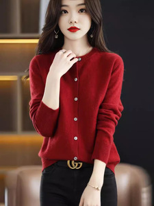 カーディガンジャケット女性の新しいニットカーディガン女性の年齢軽減長袖ラウンドネックセーターカーディガン多用途ニットジャケット婦人服