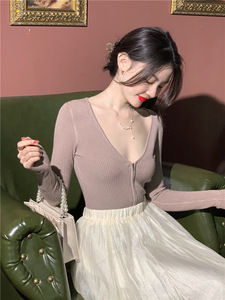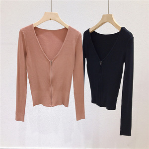 3019 春の新作 V ネックジッパー糸スリムフィットソフトワックスニットセーターカーディガン女性用