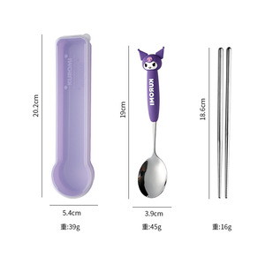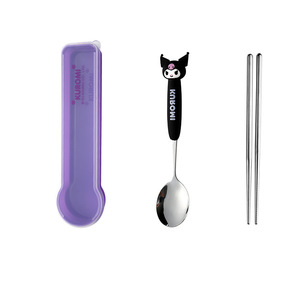 304 ステンレス鋼本物のサンリオスプーンと箸セット大きな耳の犬子供用スプーンクロメポータブル食器セット
