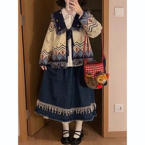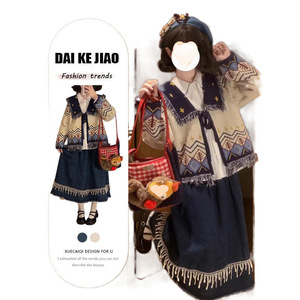 2025秋冬の新型の怠惰なレトロなフェルト島のセーターのコートはシャツのデニムの半身のスカートの3つのセットを合わせます。