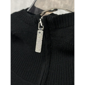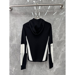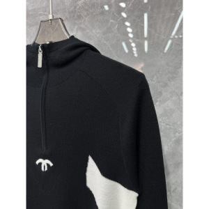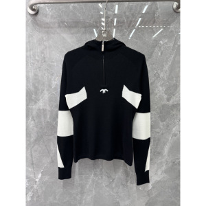 特別オファー Nanyou ハイバージョン CH ファッショナブルで多用途な黒と白のコントラストカラーのハーフジップ フード付きセーター レディース セーター