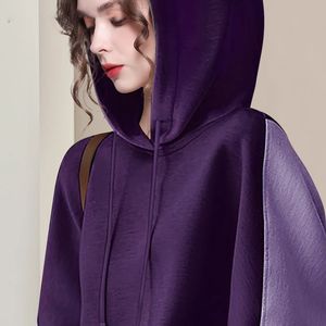 200斤高档大码2025春装连帽拼色高级感卫衣宽松紫色男女款洋气