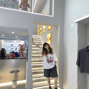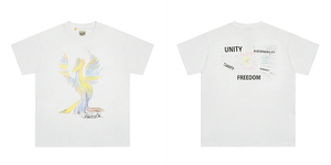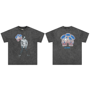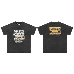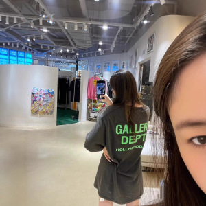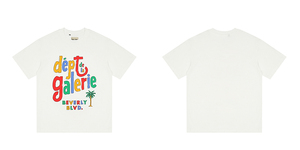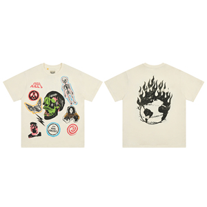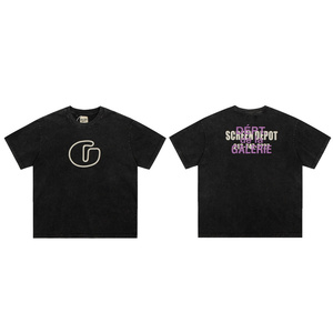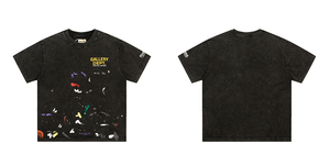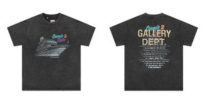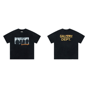 ギャラリーデパートプリント半袖アメリカンファッションブランドレトロダメージヴィンテージハイストリートルーズラウンドネックTシャツ男性用