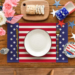 独立記念日水彩ストライプと星のプレースマット愛国的な戦没将兵記念日季節の休日のテーブルマット