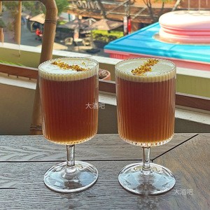 ニッチインレトロアイスアメリカンラテコーヒーカップ縦縞ゴブレットジュースカップ炭酸水カップカクテルカップ