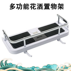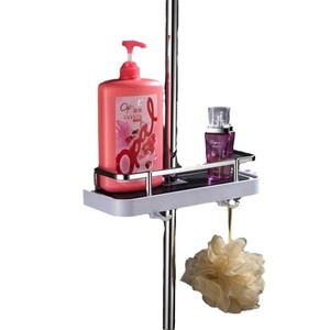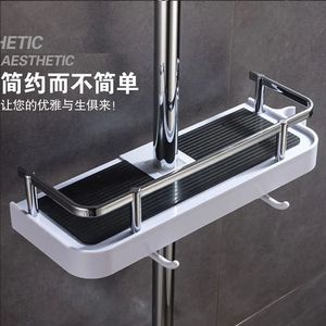 シャワーシャワーロッド収納ラック、パンチングなし、昇降可能なシャワーロッドトレイ、フック付き、多機能バスルーム収納ラック