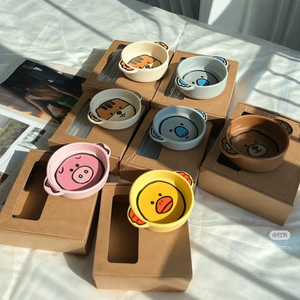 BD魔法動物陶磁器の碗のデカールの双耳は碗の猫を与えます。犬は水を飲みます。