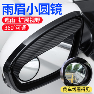クロスボーダーカーボンファイバー雨眉バックミラー付き車の死角補助360リバースミラー小型丸ミラー防雨雨よけ