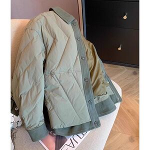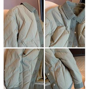 韓国ニッチコントラストカラーラペル菱形軽量綿コート男性と女性のための秋と冬のレトロカジュアル暖かいパッド入りジャケット