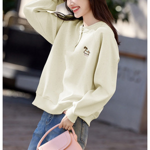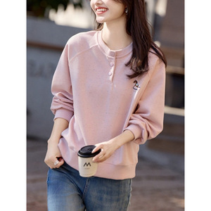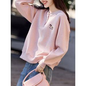 减龄刺绣长袖上衣2025年春新款简约时尚小个子圆领宽松百搭卫衣女