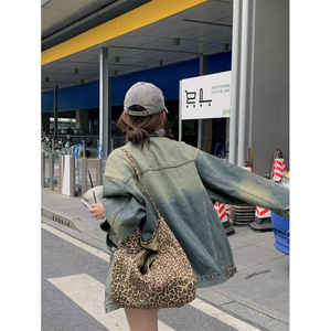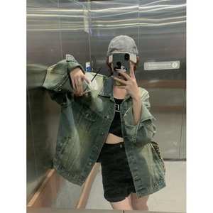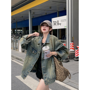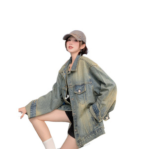 早秋の婦人服の水洗いレトロなアメリカ式長袖デニムコート