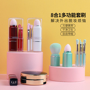 ポータブル 8 イン 1 ミニメイクブラシセット小型伸縮パウダーブラシアイシャドウブラシ旅行専用多機能