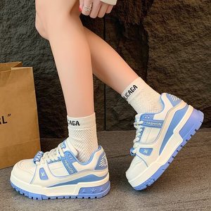 学生の色合わせの白い靴の女性2025春の新型のひもは軽やかな運動のカジュアルシューズの小さい背が高くなります。