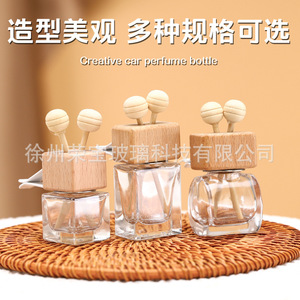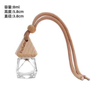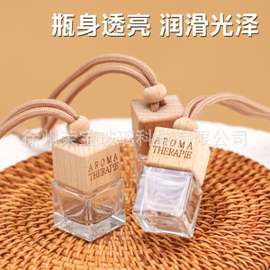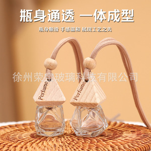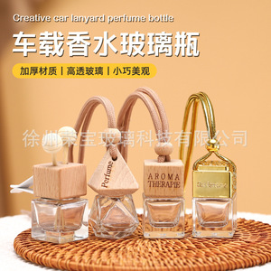 車用ディフューザーボトルペンダント、ロープ付き木製カバーペンダント、アロマセラピーボトル、空ボトル、車内吊り下げガラス香水ボトル