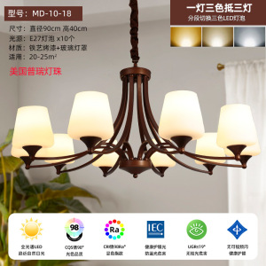 アメリカンシャンデリア、リビングルーム、ダイニングルーム、寝室の照明、カントリーレトロスタイルのアイアンガラス、フレンチシンプルで雰囲気のあるランプ