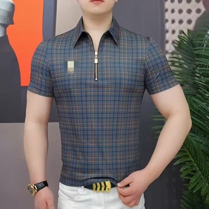 立襟氷糸半袖tシャツ男性青年潮牌半ファスナーが冷えています。