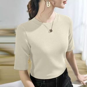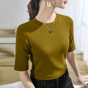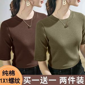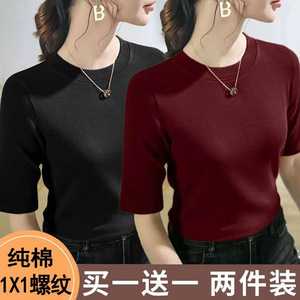 【工厂直销】安可拉红纯棉五分袖中袖打底衫女内搭新款气质百搭