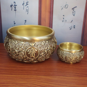 聚宝盆オフィス客間書斎招財置物真鍮コイン聚宝盆銅置物真鍮工芸置物