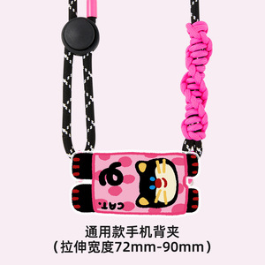 横たわっている黒とピンクの猫 - 携帯電話のバック クリップ + クロスボディ ストラップ
