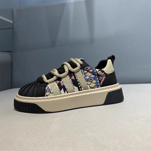 新しいファッショナブルなシェルトゥスポーツカジュアルシューズ、多用途の毎日の通勤、ロートップ厚底衝撃吸収メンズスニーカー、エスニックスタイル
