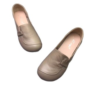 2025春の新作ソフトレザーマザーズシューズ、柔らかいソール、快適な浅い口のシングルシューズ、中高年女性向けのスリッポンビーニーシューズ