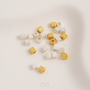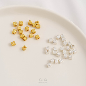 卸売ビーズ、色褪せ防止18Kゴールドカラー、シルバーカラー、槌目加工、隕石風面、スクエアビーズ、DIYブレスレット、ネックレス、ジュエリー、アクセサリー、スペーサービーズ