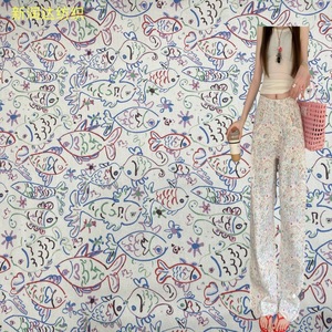 レトロな小魚の落書きのプリントの斜紋のガーゼのアメリカ式のギャルの風の小さい大衆のゆったりしているレジャーのズボンの生地