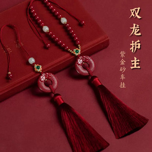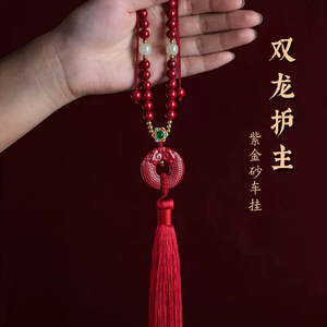 朱砂平安バックル自動車ストラップ双龍保護珠車掛男女バックミラー高級低含有量車載吊り飾り