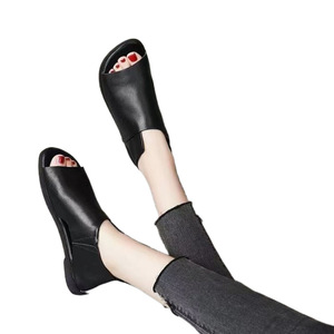 本革レトロソフトソールフィッシュマウスサンダル女性のための 2025 春夏新ソフト牛革フラット中空ローマンシューズ弾性バンド